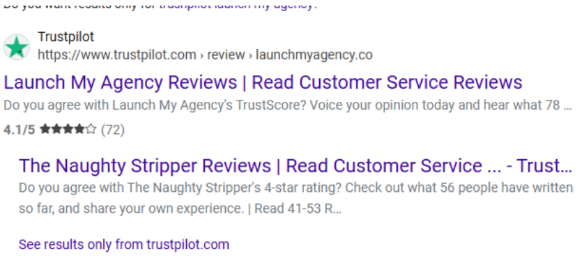At one point, TrustPilot records show that the Launch My Agency profile name was changed, and the “Visit this site” link temporarily directed to an unrelated Amazon page. The profile name displayed as “The Naughty Stripper” during this time, although the URL remained associated with Launch My Agency. An unrelated Gmail address was also listed on the account. No official explanation for these changes has been provided. Additionally, several TrustPilot reviewers have commented that they were encouraged to leave positive reviews early in their experience with the program, which may affect the overall credibility of the review profile. Eventually, the Launch My Agency name and link were restored.